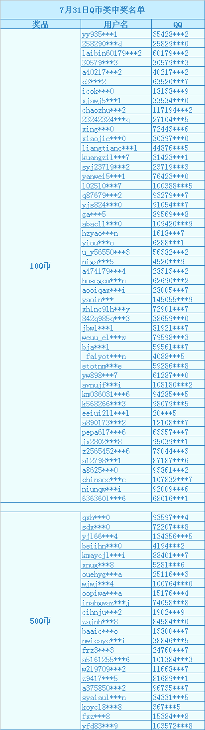 1.奖品已经开始发放,Q币类奖励一周内未领到奖品的请与官方联系。