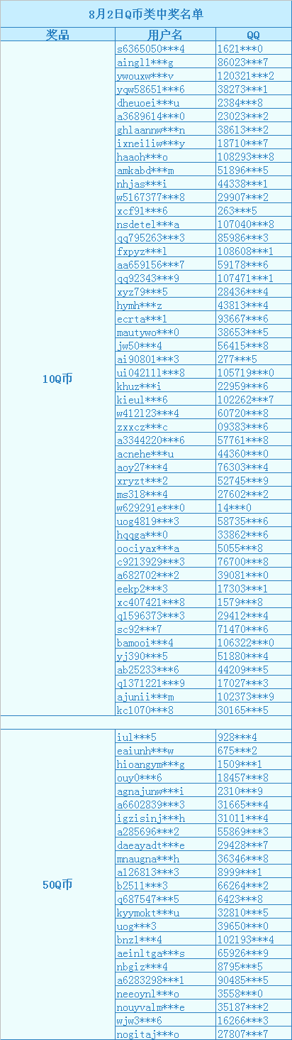 7月31日~8月2日“百万豪礼 100%有奖”活动中奖名单