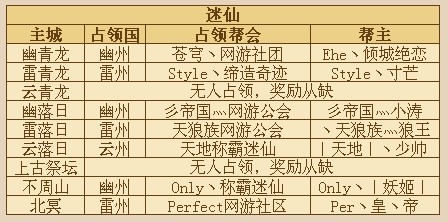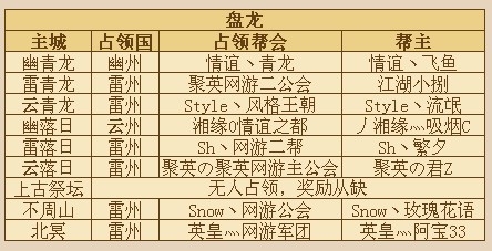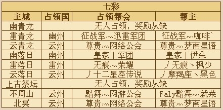3.每个帮派占领第一个主城才能获得奖励。如果同一个帮派在占领第一个主城确定奖励名额后,又成功占领其他的主城,那么此主城的奖励从缺。