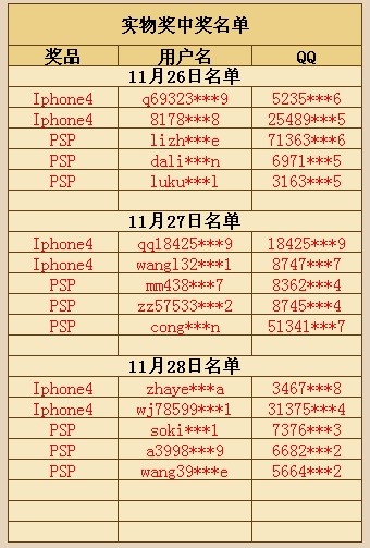2.中了实物奖的玩家请及时联系官方的工作人员(24小时客服电话:0755-26734415),官方人员在核实您的信息后给予发奖,兑奖截止日期:12月20日。