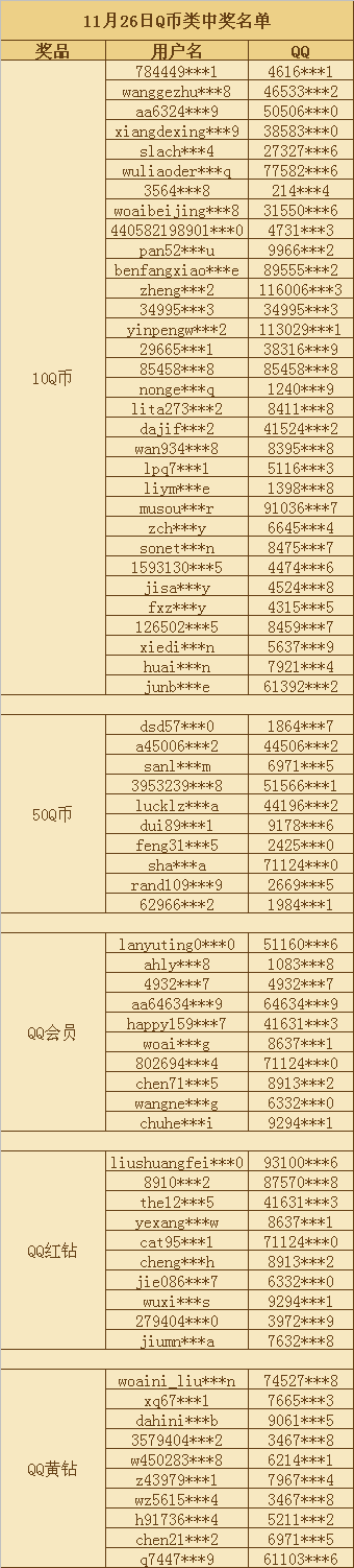 1.奖品已经开始发放,Q币类奖励一周内未领到奖品的请与官方联系。