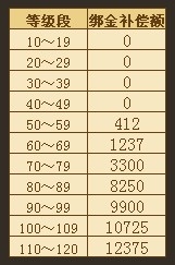 ①.【沧海】各等级绑金补偿如下: