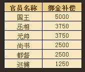 3.官方将根据人物等级给予绑金补偿,国家官员也享有特有补偿,具体如下:(补偿将在5月17日维护时发放)