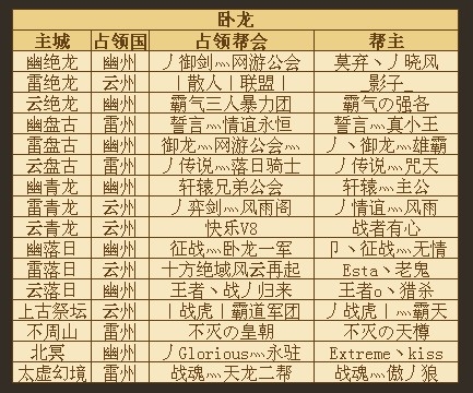 [卧龙,惊天]主城首down,争当FD获奖名单