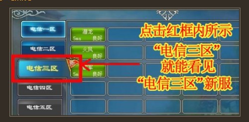 鼠标点击上图红框所示“电信三区”就能看见电信三区新服