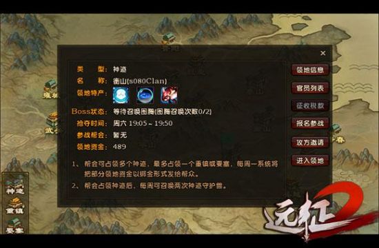 领地争夺战将以帮会为单位展开。在领地规则上,对待不同等级的城池规则也有所改变。每个独立帮会只能占领一个要塞或重镇,但可同时占领多个神迹。因此,各领地争夺战的时间也有所不同,最为激烈的神迹争夺战则在周六、周日两天分批进行。这样可以让玩家更为合理地安排争夺和防守。