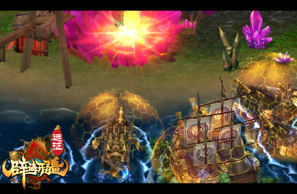《远征》“辟海开疆”开放了四艘形态各异的战舰。每一艘战舰都拥有自己独特的技能。用于保护运输战舰的铁甲战船,用于偷袭骚扰的极速战舰,拥有多种进攻方式的海皇战舰。而且不同战船根据其属性,运载量也截然不同。最大的海皇战舰可以容纳三十人,超大的承载量在游戏中史无前例。玩家可以根据统战的战略部署,选择不同的战舰,更好地完成目标!